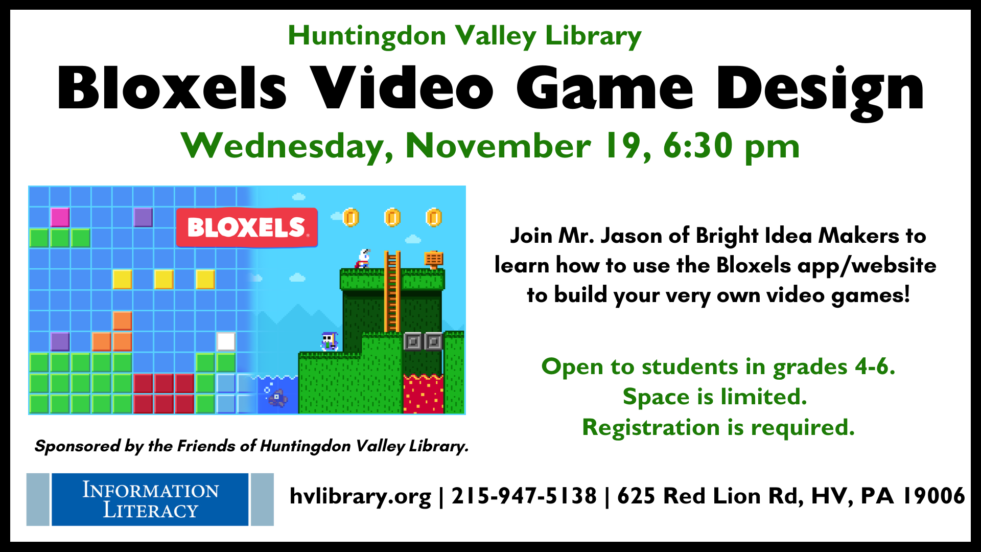 Bloxels Video Game Design, Wed., Nov. 19, 6:30 pm
