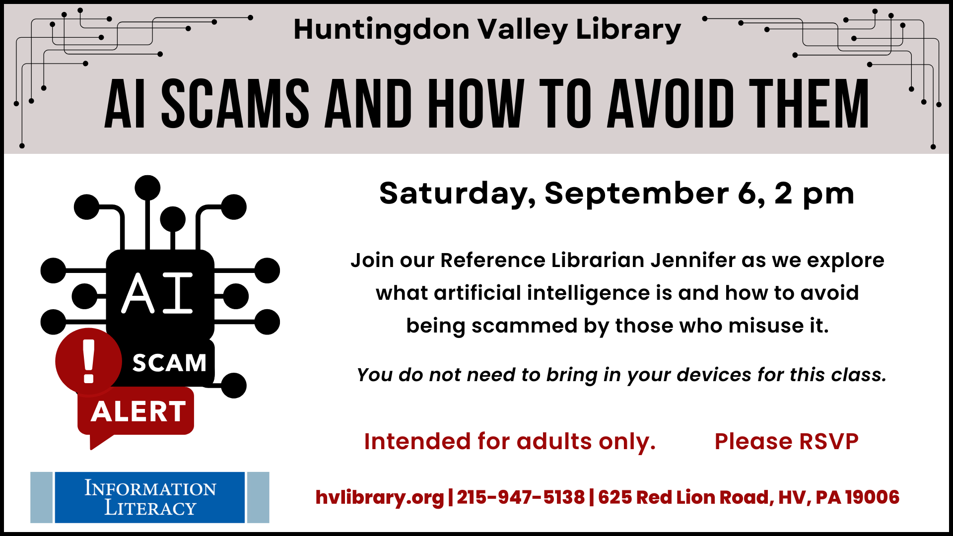 AI Scams & How to Avoid Them, Sat., Sept. 6, 2 pm