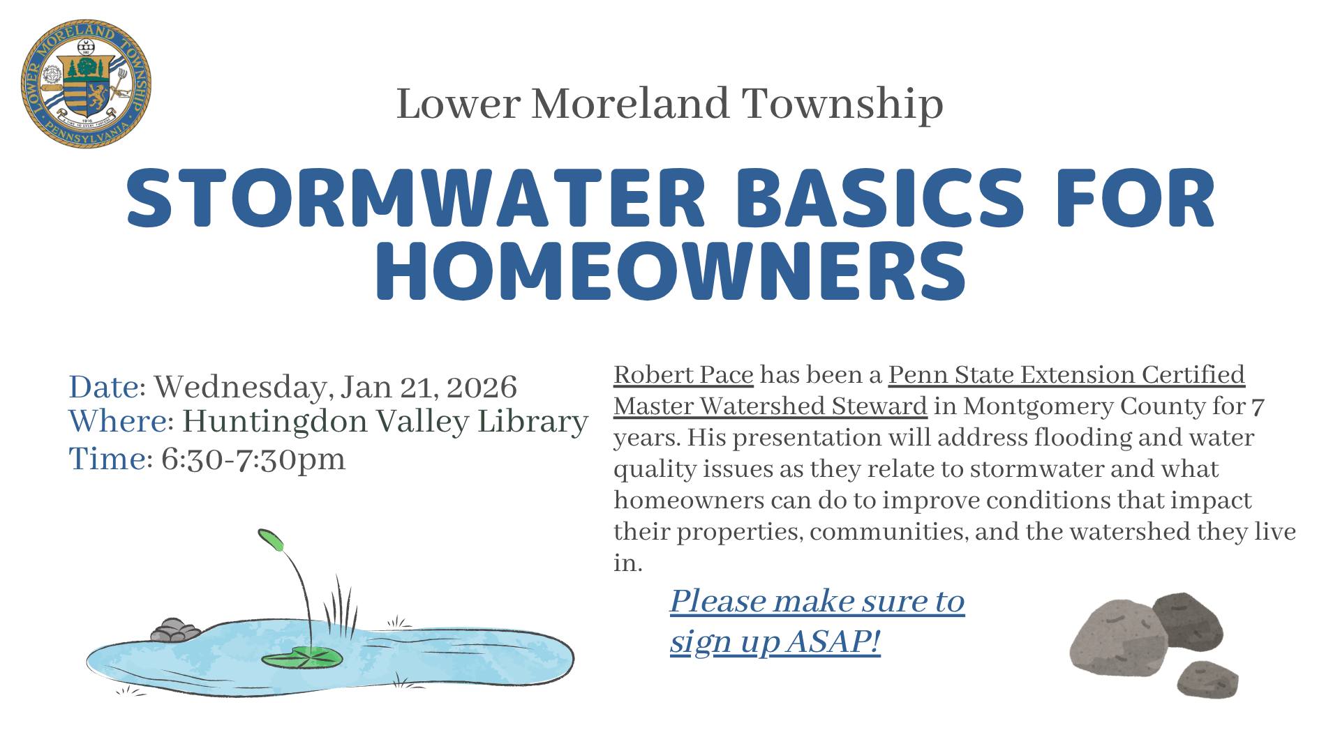 Stormwater Basics for Homeowners, Wed., Jan. 21, 6:30 pm
