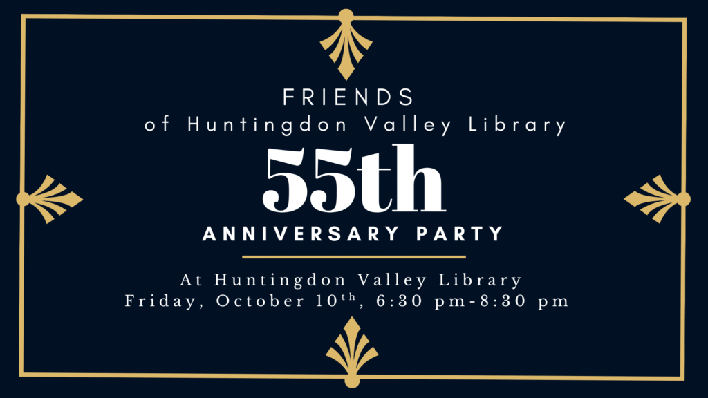 Friends of Huntingdon Valley Library 55th Anniversary Party, Fri., Oct. 10, 6:30 pm