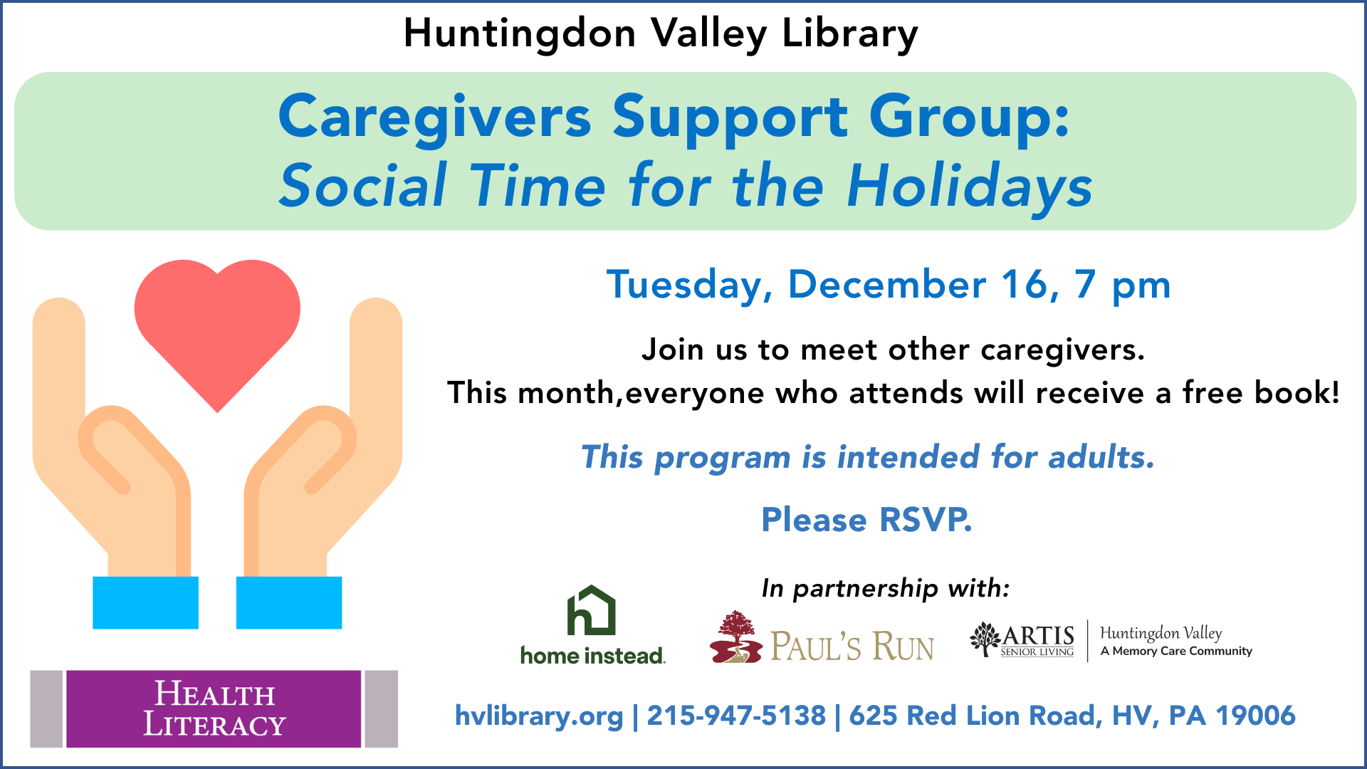 In partnership with Home Instead, Paul’s Run, and Artist Senior Living in Huntingdon Valley.