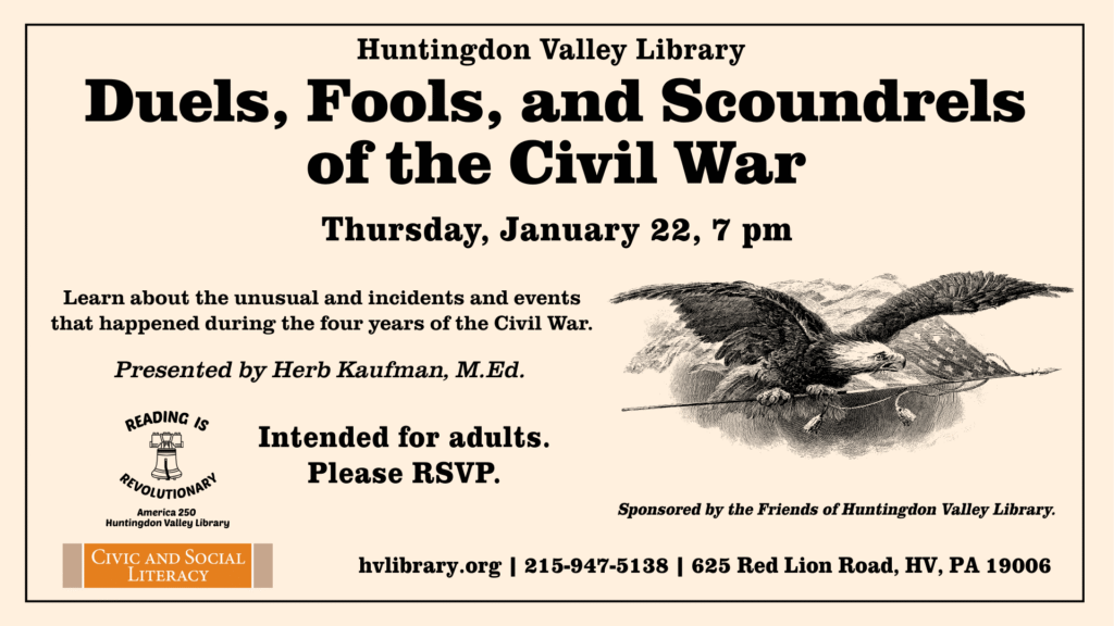 Duels, Fools, and Scoundrels of the Civil War, Thurs., Jan. 22, 7 pm