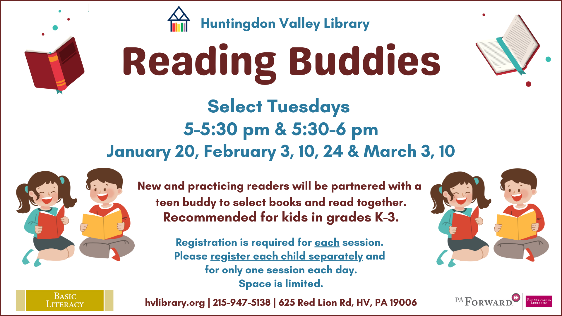 Register for Reading Buddies sessions on our online calendar.
