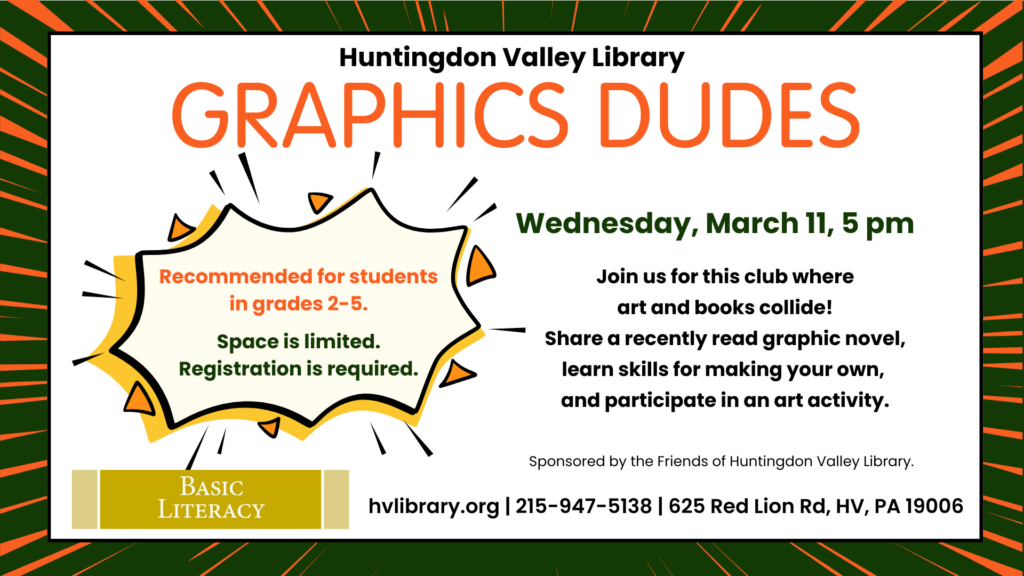 Join us for this club where art and books collide! Share a recently read graphic novel, learn something new about how to make your own, and participate in a comic-related art activity.