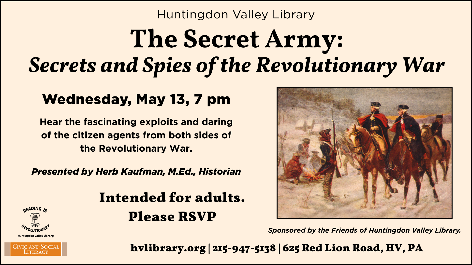 The Secret Army: Secrets and Spies of the Revolutionary War, Wed., May 13, 7 pm