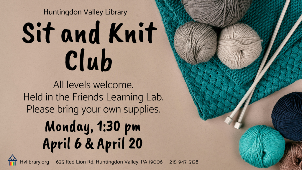 Join this dynamic group of knitters to chat, share patterns and encourage each other. This knitting circle is perfect for the knitter looking to expand their skills. All levels welcome. Please bring your own supplies. Located in the Friends Learning Lab.