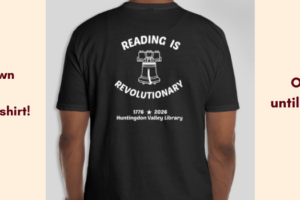 Proceeds benefit Huntingdon Valley Library lectures and program fund. Order your very own Reading is Revolutionary T-shirt. Click here to order or use the QR code on the photo.